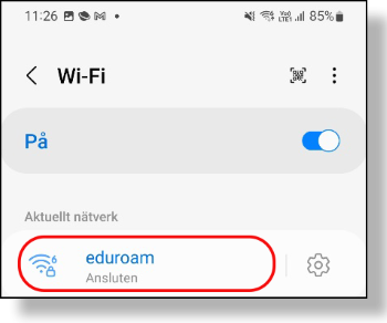 Tap Go to Wi-Fi Settings to confirm that eduroam is connected (ansluten).